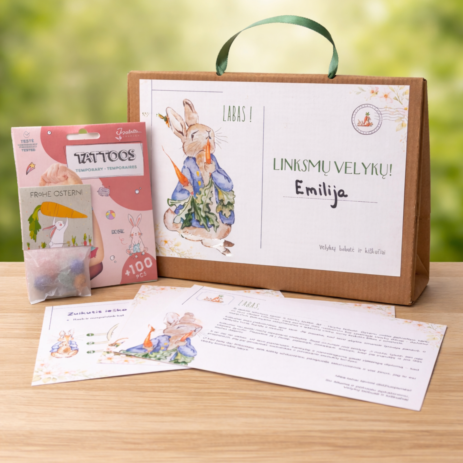 Velykų bobutės laiškas su Jūsų vaiko vardu – šilta, asmeniška žinutė iš Morkų miško, kuri sukuria tikrą šventinę emociją.